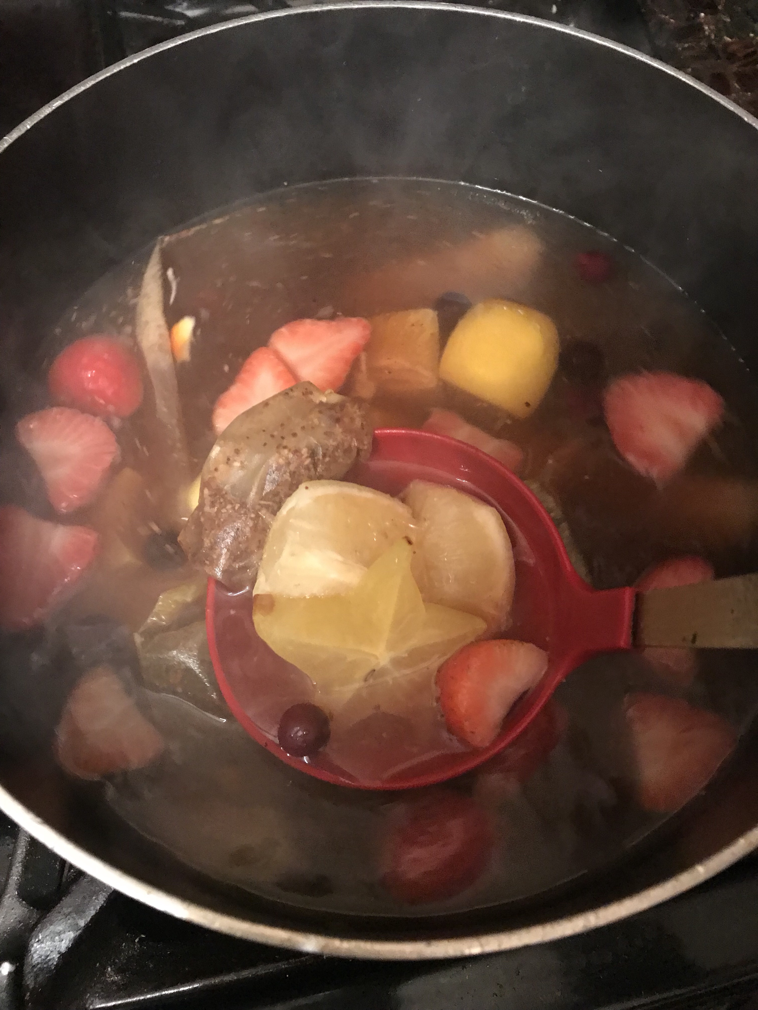 3. Let it steep for about 10 minutes and drain the seeds, fruit and tea bags