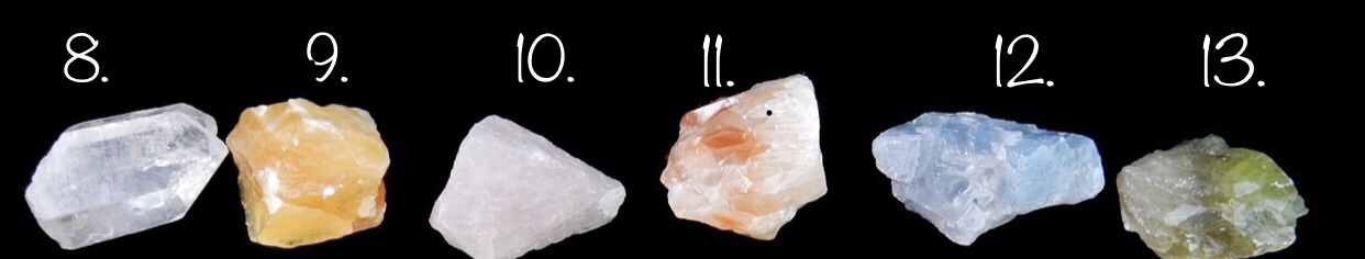 12.Blue Calcite: crown chakra, balance hormones, aids in pregnancy and child birth, protect emotional boundaries, rejuvenate body, attracts love