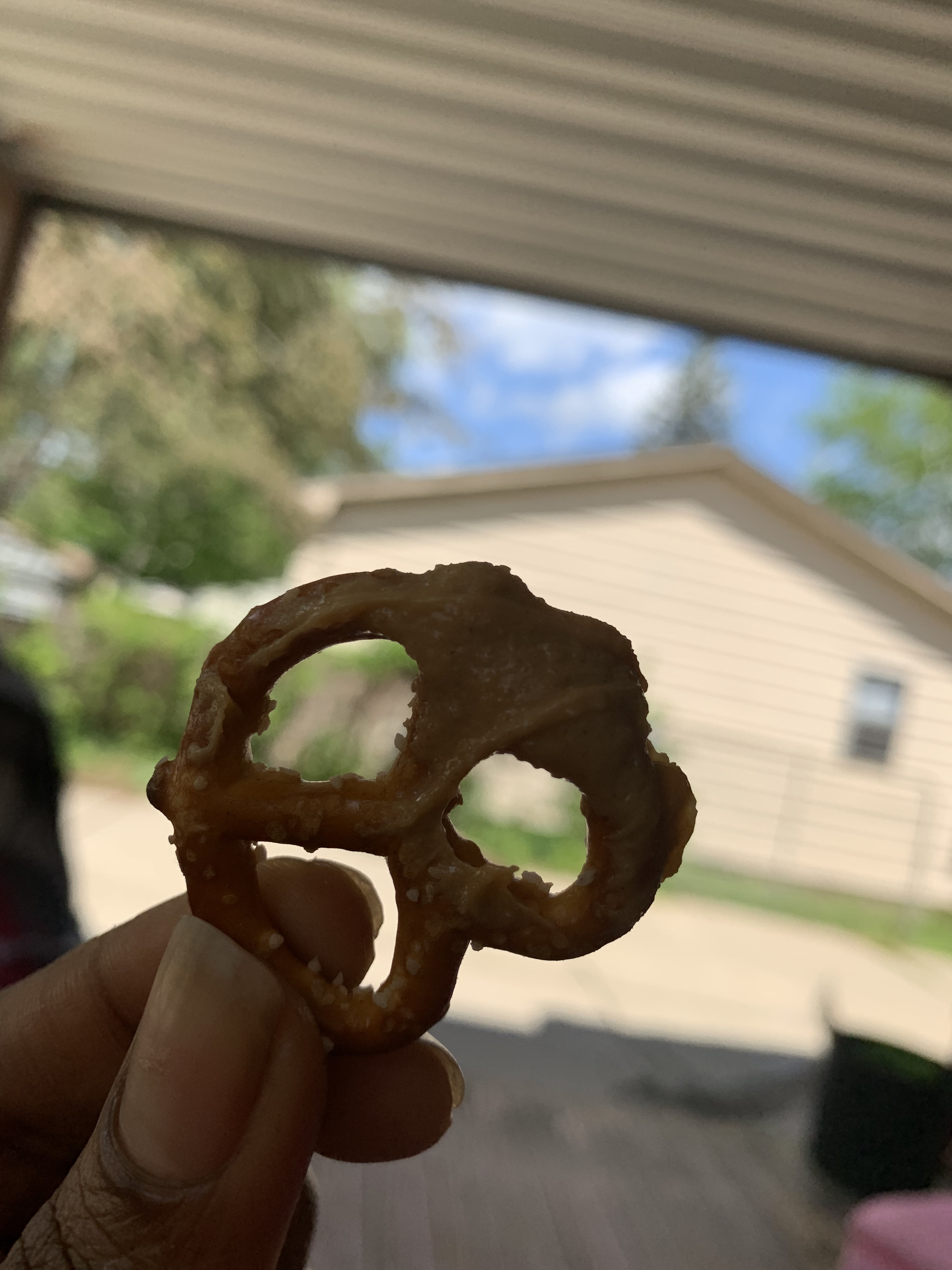 Pretzels 🥨 and peanut butter; a great snack for the family picnic.