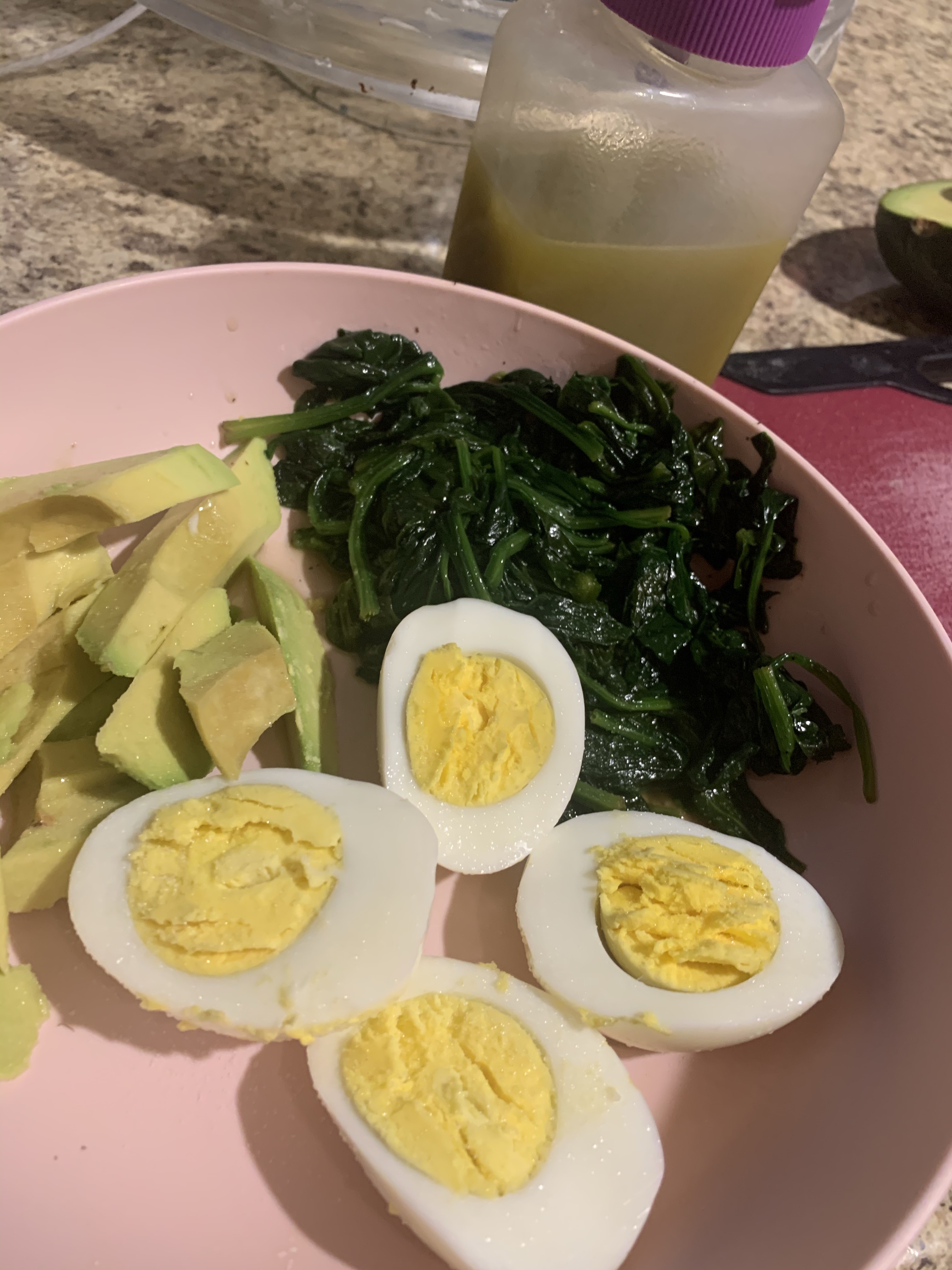I switch it up keeping my taste buds awake each day. Today for lunch I kept it simple but tastey. Yummy avocado, spinach and boiled eggs 😊.