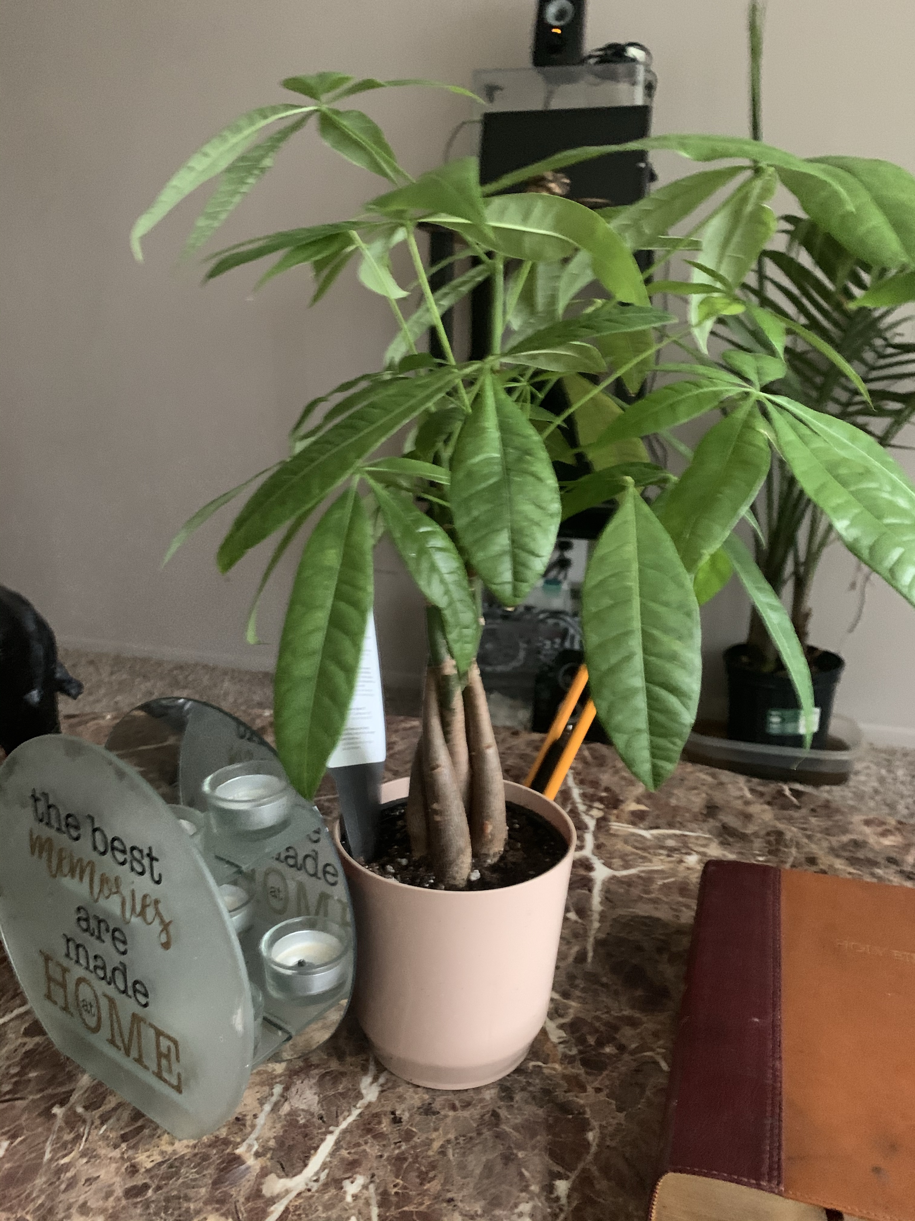 Money tree (needs a lot of sun but only 3 table spoons of water)