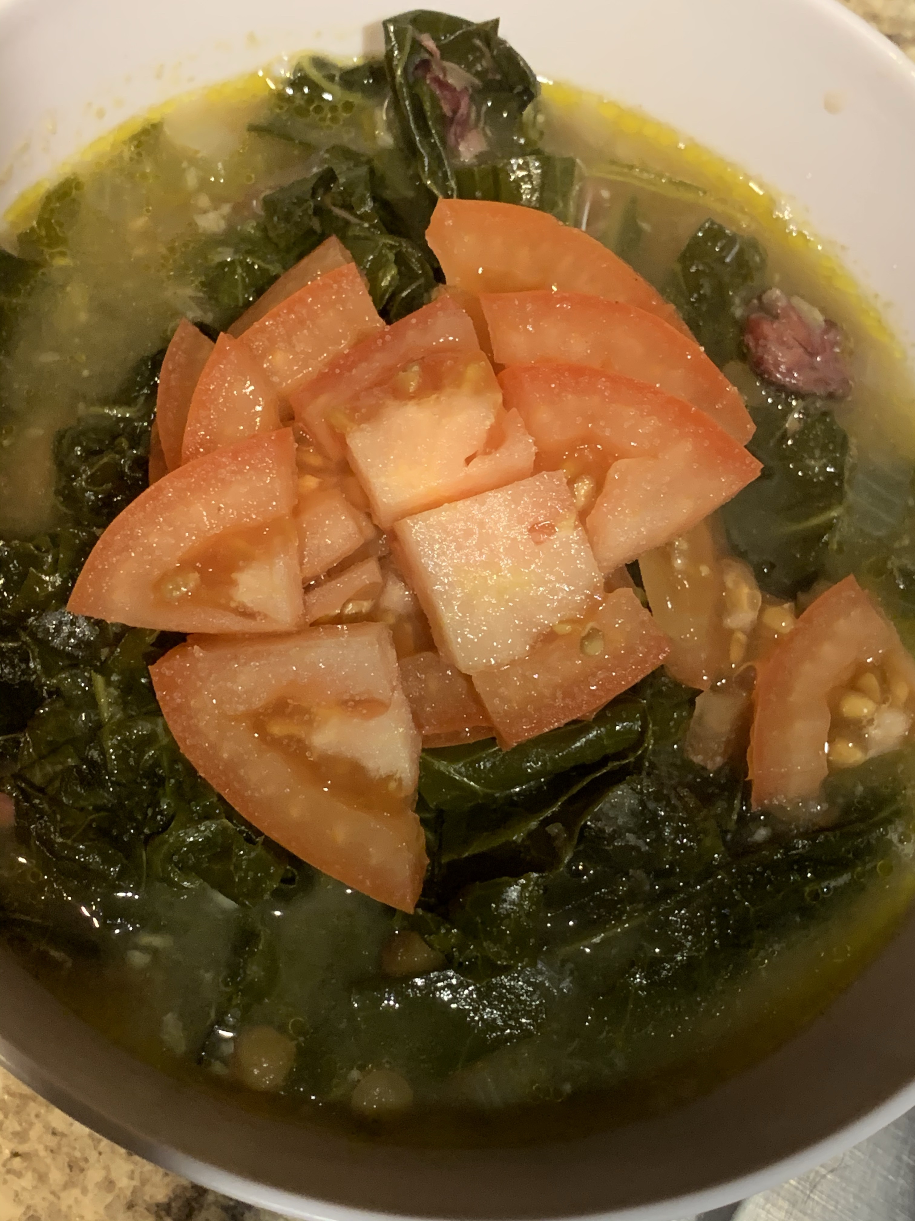 Lentil sausage soup with greens