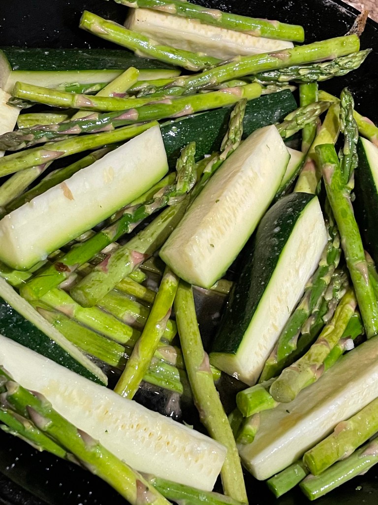 Keeping healthy is a great way to stay thriving because obviously we need healthy foods like asparagus, zucchini, broccoli and our many other vegetables friends to keep us well and energized. I like to roast mine on 420 for about 15 min or until tender. Great with any protein or as a snack.