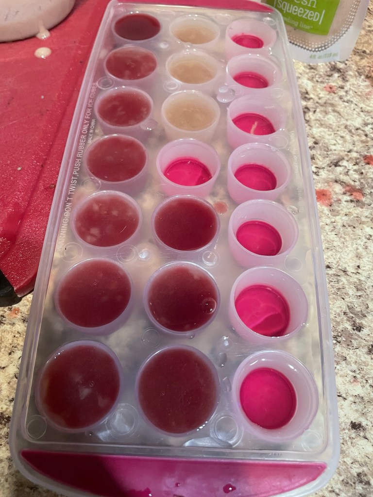I simply blended up some fresh strawberries added coconut milk (silk brand but it doenst matter what you use). Pour it into my mold and WALA